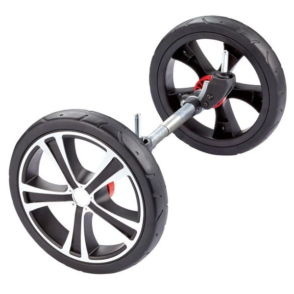 Die wendigen Vorderräder mit Feststellfunktion lassen sich je nach Wunsch gegen robuste, große Räder mit durchgehender Achse auswechseln. Sie profitieren von Einzelschwenkräder z.B. in der Stadt und große, feste Räder im Gelände.